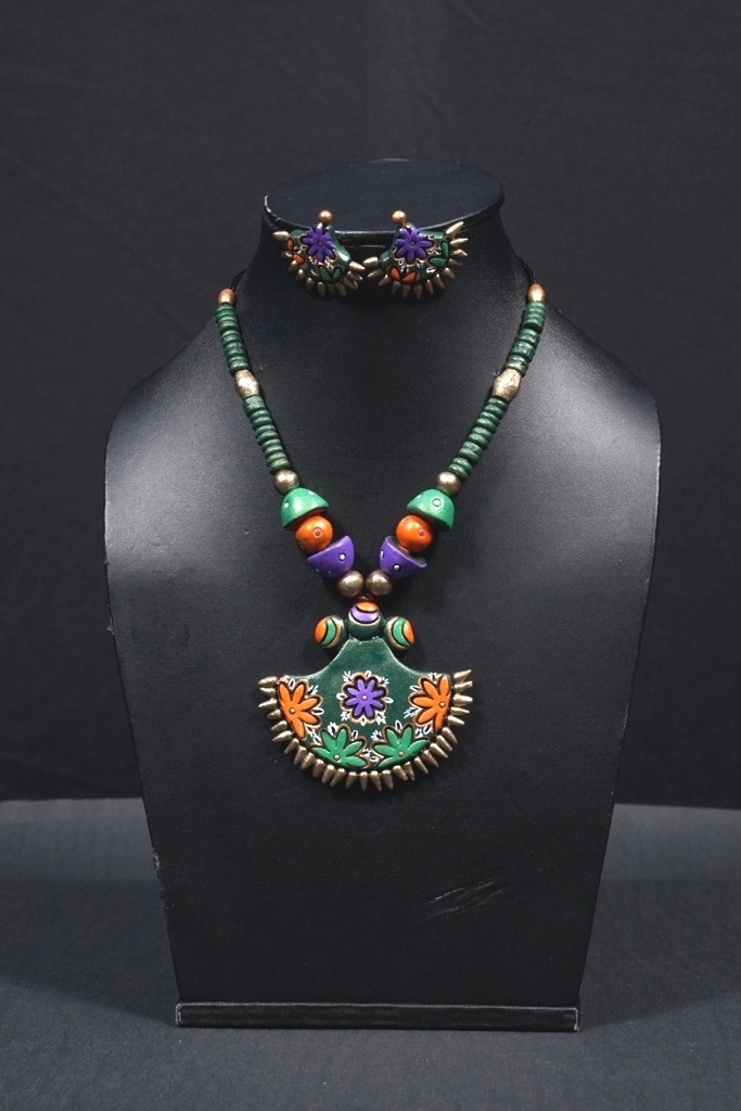 This elegant piece of terracotta ethnic style pendant necklace set with matching earrings can be worn with traditional sarees, lehengas for special occasions. This will make you stand out in any crowd. Best gift for your loved ones.