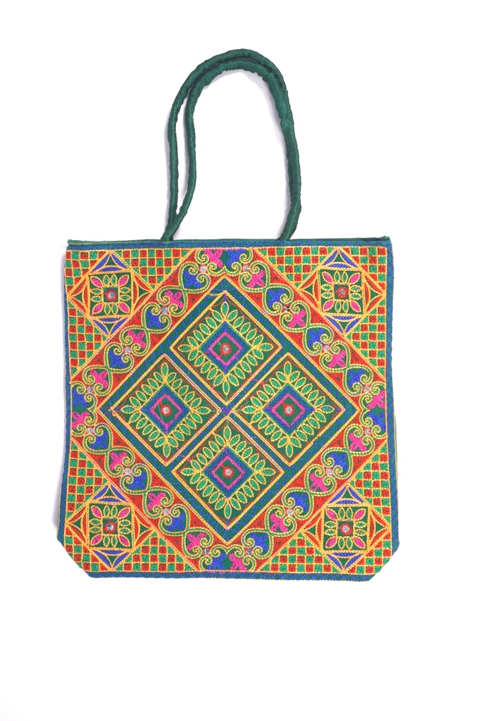 The elegant shoulder bag with beautiful colorful kutch hand embroidery is a must in your bag collection. Can be used as an everyday shoulder bag and also for temple visits and shopping.