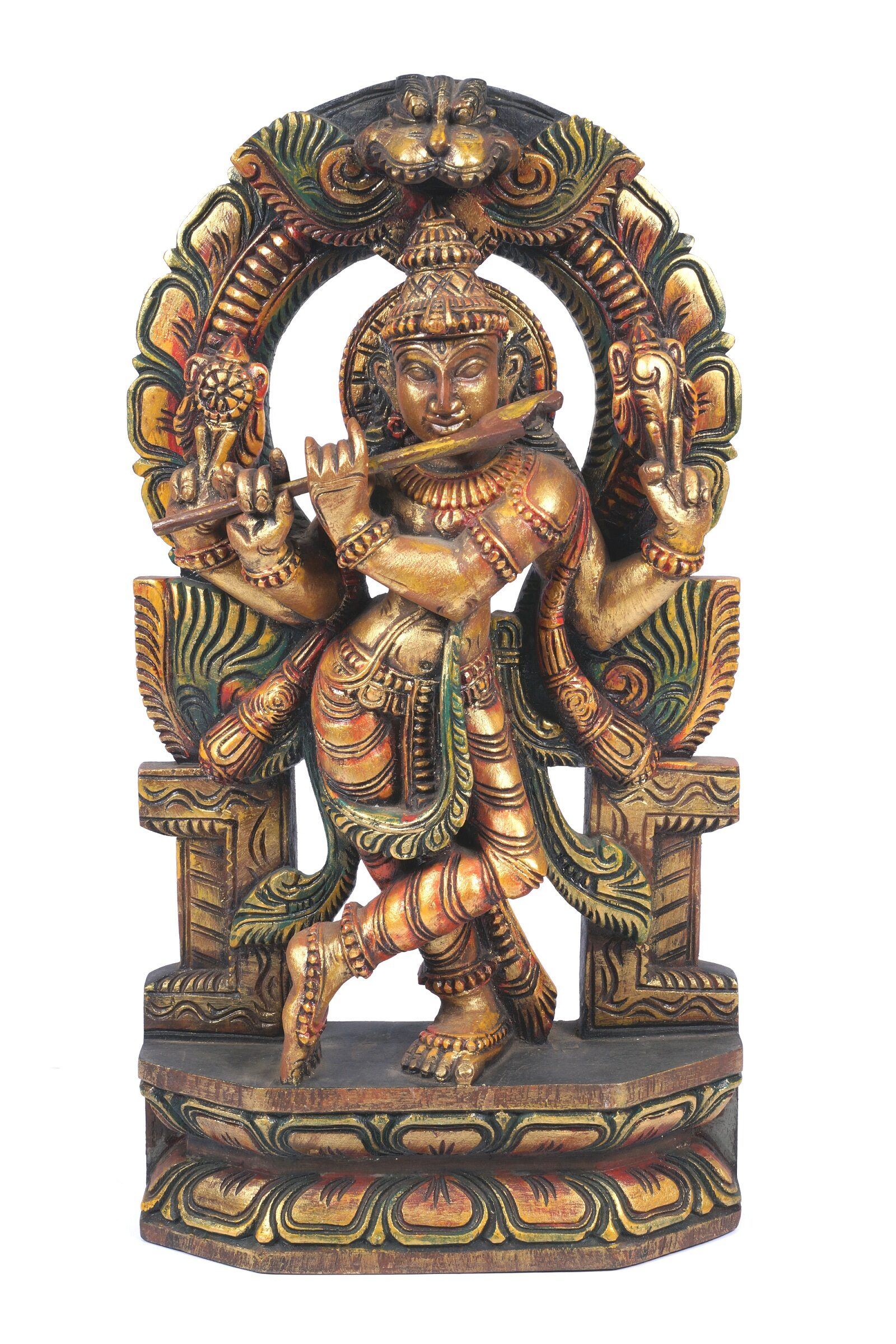 Hand Carved Artistic Elegant Vaagai Wooden Krishna Statue 18″