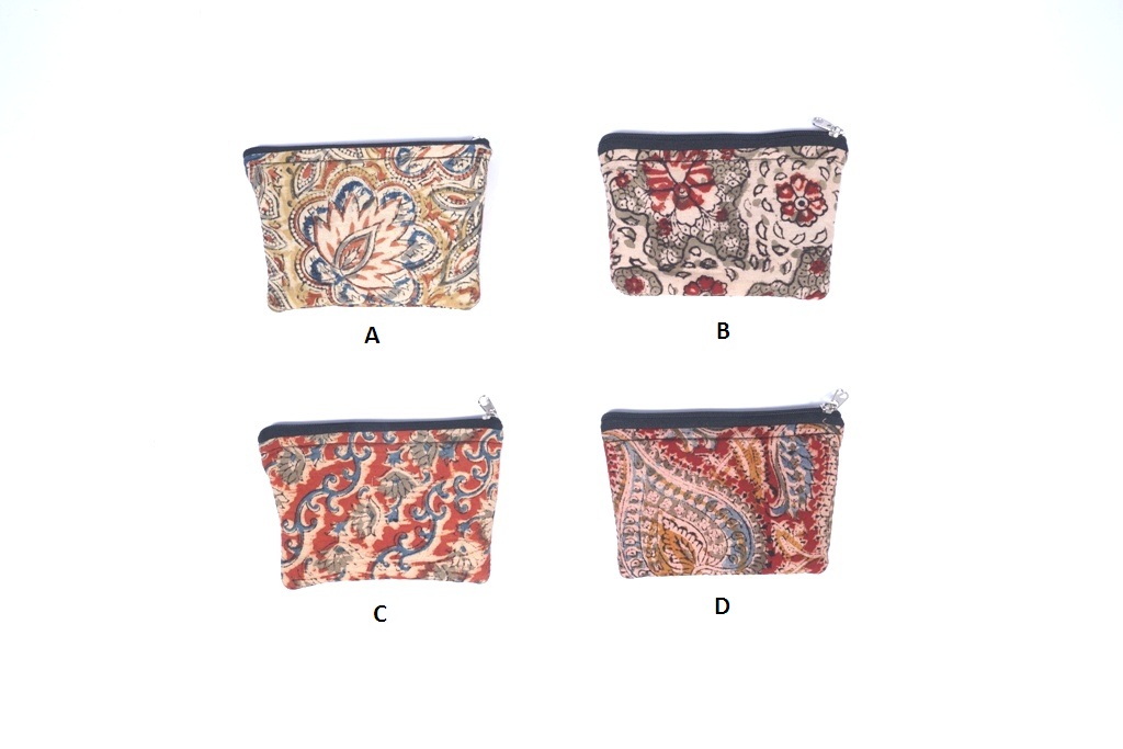 Cute boat-shaped coin purse hand-made with kalamkari fabric. Can be used as a gift pouch for packaging mini gifts such as earrings, coins, etc.