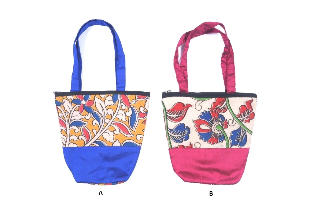 Kalamkari mini top zip bag with art silk bottom patch and handle. Best gift for all occasions.
