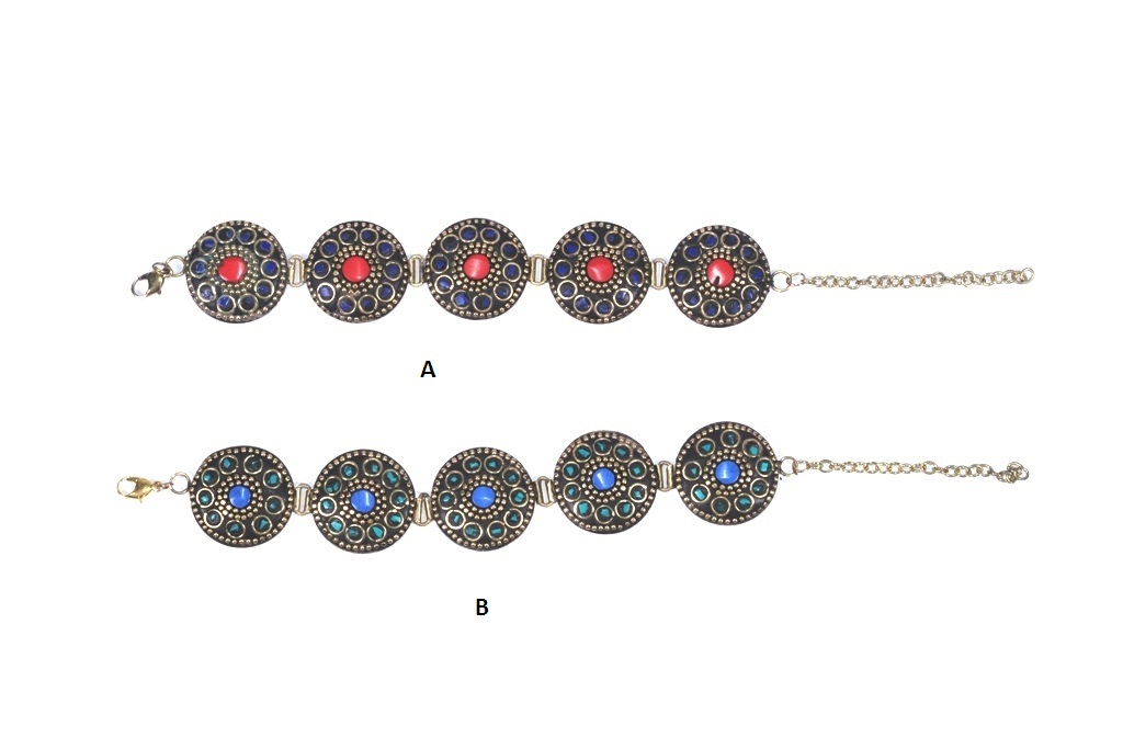 Elegant vintage oval coin-shaped brass adjustable bracelets with Nepali brass and stonework to style with Indian & western outfits. Can be matched with skirts, kurta, tunics, top, sarees to make a style statement. A great gift for your friend on a special occasion.